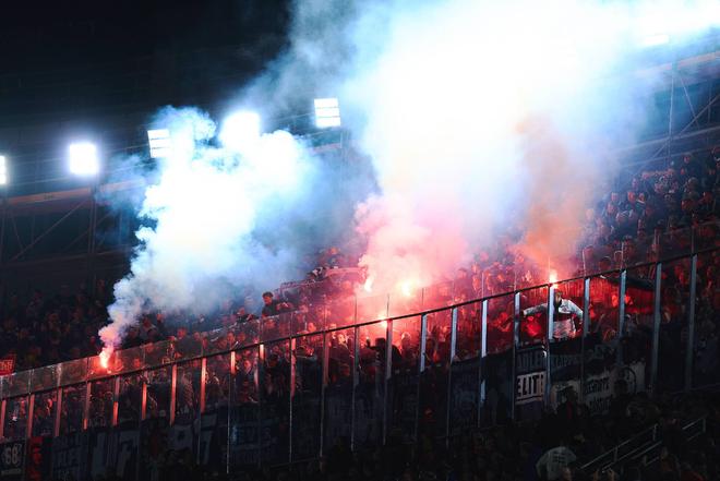 在欧冠最高舞台,球迷的威慑也没有停止。2025年12月,法兰克福重返严阵以待的新诺坎普,在无法复制人海战术的严密管控下,部分极端球迷以更激烈的行为,用漫天飞舞的烟火再次留下了他们的印记。他们的做客早已超越了90分钟的竞技范畴,从集体的荣耀展示到个体的激进表达,形式因势而变,但其核心诉求始终如一:不惜一切代价,在客场争夺绝对的话语权与文化存在感。这正是法兰克福远征军团留给世界足坛最深刻、也最难以复制的文化烙印。